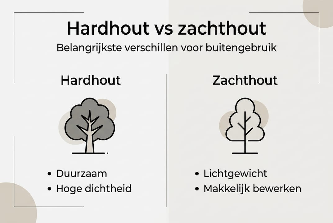 Hoe verschillen hardhout en zachthout in gebruik voor buitenconstructies?